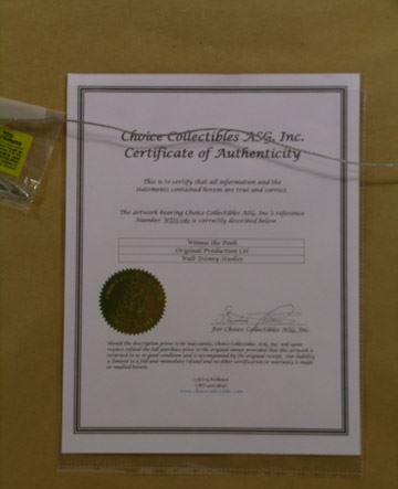 Original framed Winnie the Pooh production cel (approx. 22"x19")