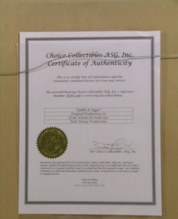 Original framed Winnie the Pooh - Rabbit and Tigger production cel, 1973 (approx. 22"x18")