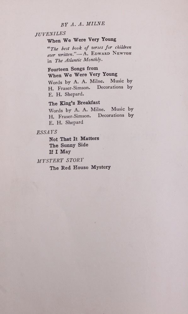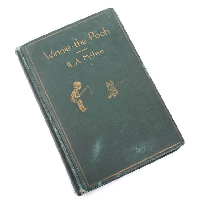 For your bidding pleasure, we have a Winnie-the-Pooh book by A. A. Milne with decorations by Ernest H. Shepard. This book was published in 1926 by E. P. Dutton & Company. This book boasts 158 pages with gilt lettering and design on the cover. The previous owners name is inscribed on th front sheet but otherwise this book is in excellent condition considering its age. This vintage piece would make an excellent collectors item. It measures 7 3/4" X 5 1/4".