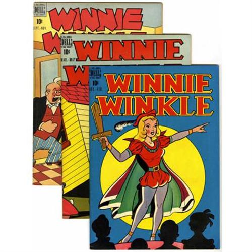 <B>Winnie Winkle #3-5 and 7 File Copies Group (Dell, 1949) Condition: Average VF.</B></I> Includes #3, 4, 5, and 7. Approximate Overstreet value for group = $100.<BR><BR><b>Shipping:</b> Comics - Unslabbed (<a target="_blank" href="http://www.heritageauctions.com/common/shipping.php">view shipping information</a>)