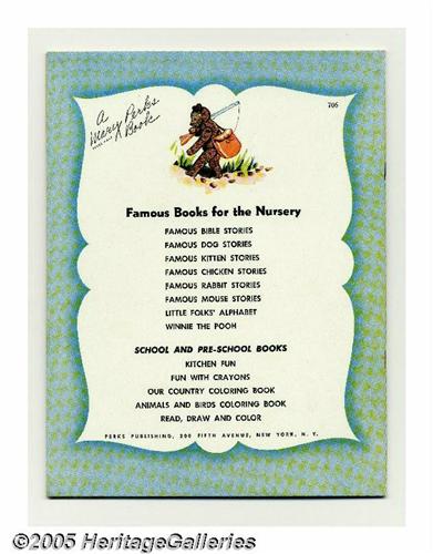 <B>Winnie the Pooh Illustrated Edition - Vancouver pedigree (Perks Publishing, 1944).</B></I> Number 706 in the Mary Perks book series. A. A. Milne's text is illustrated by Mary and Wallace Stover. 24 pages. <I>From the collection of Chris Bell</B></I>.