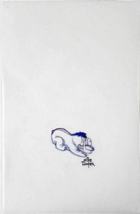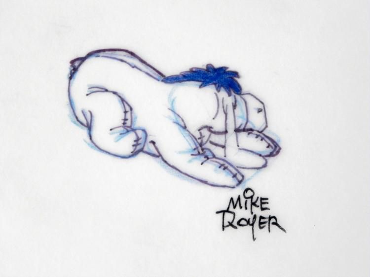 Offered here is an original Winnie the Pooh animation drawing of Eeyor signed by cartoon artist Mike Royer. Mike Royer helped launch a Winnie the Pooh licensing program in late 1993; for the latter, he was featured in a 43-minute video, How To Draw Pooh,