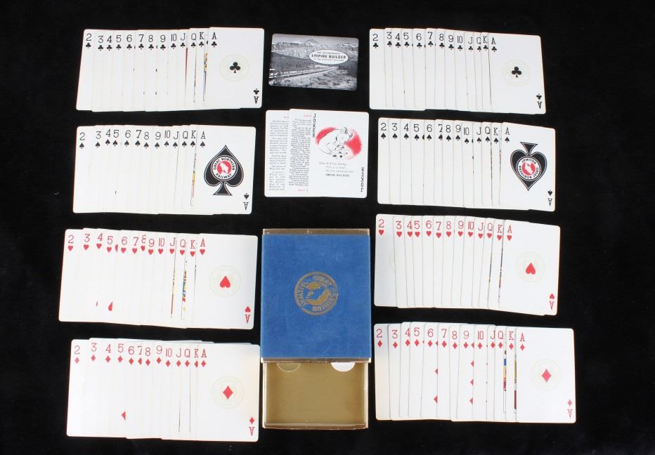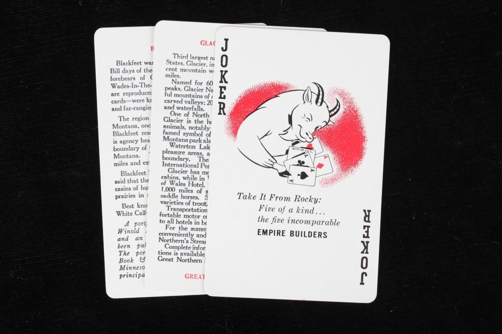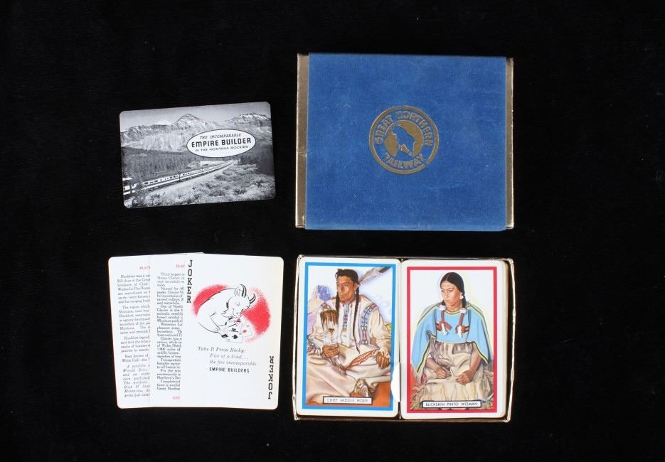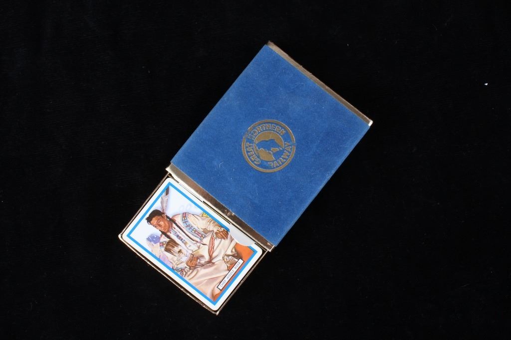 For your consideration is this set of original set of playing cards from Great Northern Railways featuring artwork from Winold Reiss, an artist well known for his renditions of the Blackfeet Indians. The condition of this of this deck of cards is good showing like new condition. The measurements of this set of cards are 4" x 5".