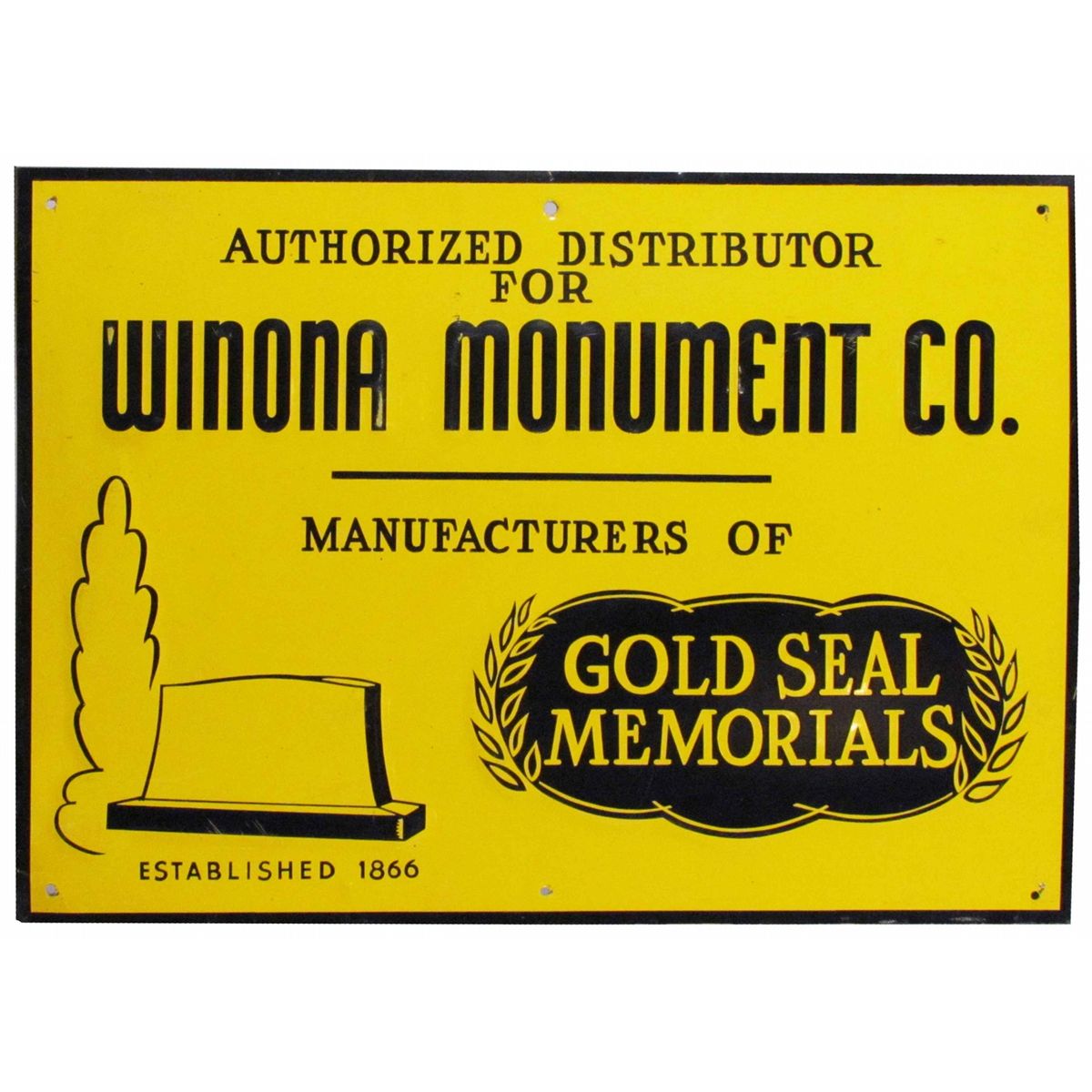 Winona Monument Co. Embossed Tin Sign. Very good condition. 10 X 14 inches.