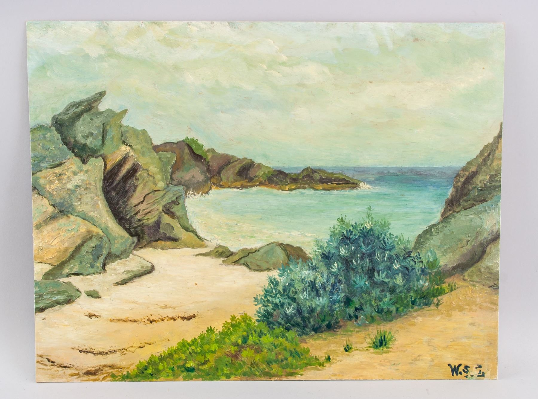 Oil on board painting. Featuring landscape scene of coastal beach. Signed WSC on the lower right corner. Stamped Galerie-Beyeler PARIS and inscribed Winston Churchill, 1874-1965 on verso. Attributed to Winston Churchill (1874-1965, British). 17.7 x 13.8 in. (45 x 35 cm). PROVENANCE: Private Collection (Manchester, UK)