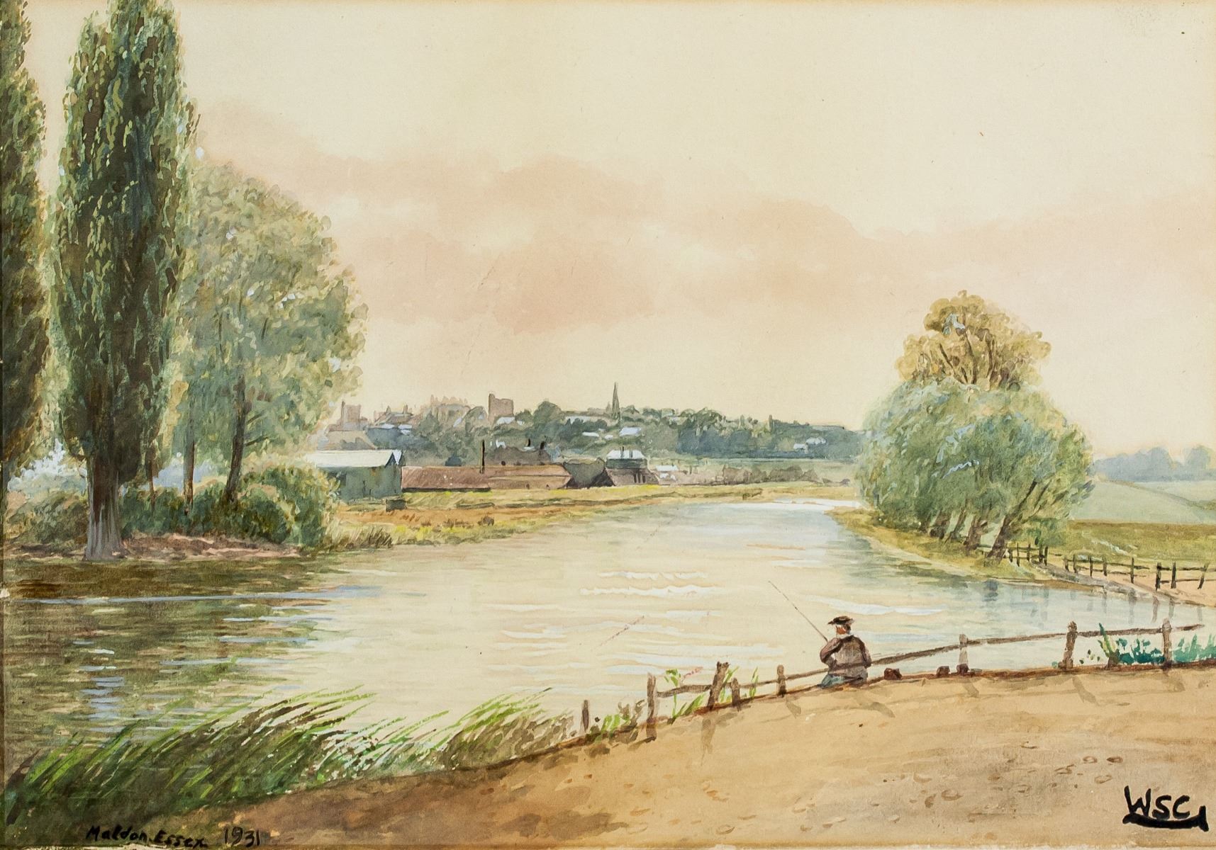 Watercolor on board. Featuring a landscape scene with a lone fisherman. Signed WSC on the lower right corner. Inscribed Sir Winston Churchill on label, verso. Stamped Galerie Mathias Fels PARIS. 24 x 34.5 cm (9.4 x 13.6 inches). PROVENANCE: This lot carries limited provenance from a Private English collection