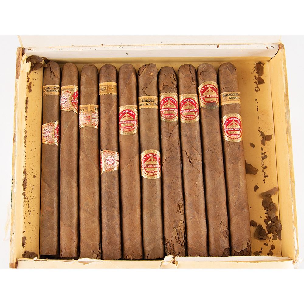 Accompanied by a letter of provenance dated April 21, 1980, in full: "This is to certify that these cigars with the 'Winston Churchill' band remain from those given by Mr. Winston Churchill himself from time to time to my brother when he was attendant in an official capacity upon Mr. Churchill during the years 1940 to 1945."