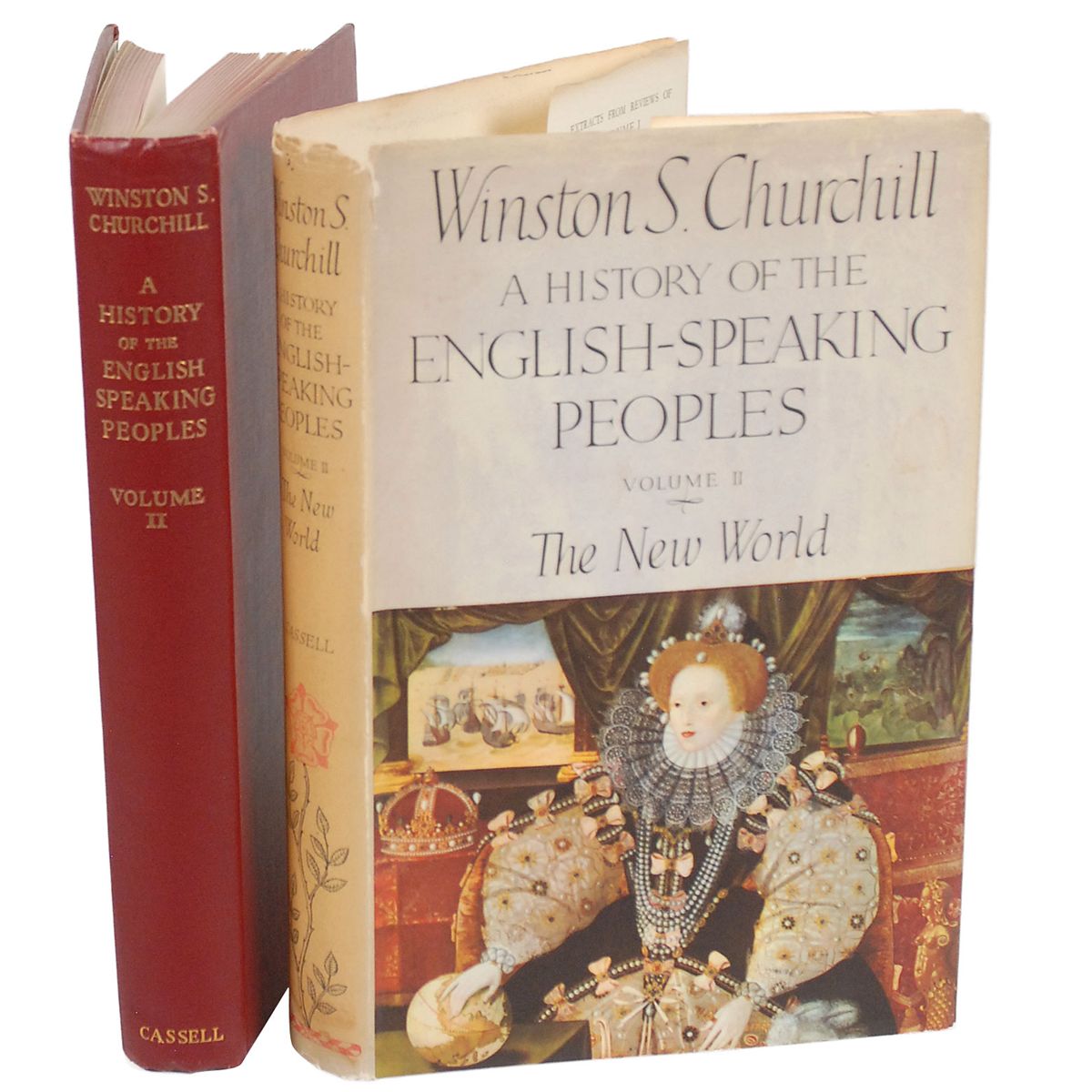 Signed book: A History of the English-Speaking Peoples Volume II. Later printing. London: Cassell and Company, 1956. Hardcover with dust jacket, 6.5 x 10, 344 pages. Initialed on the second free end page, “WC.” Autographic condition: fine. Book condition: VG/VG.