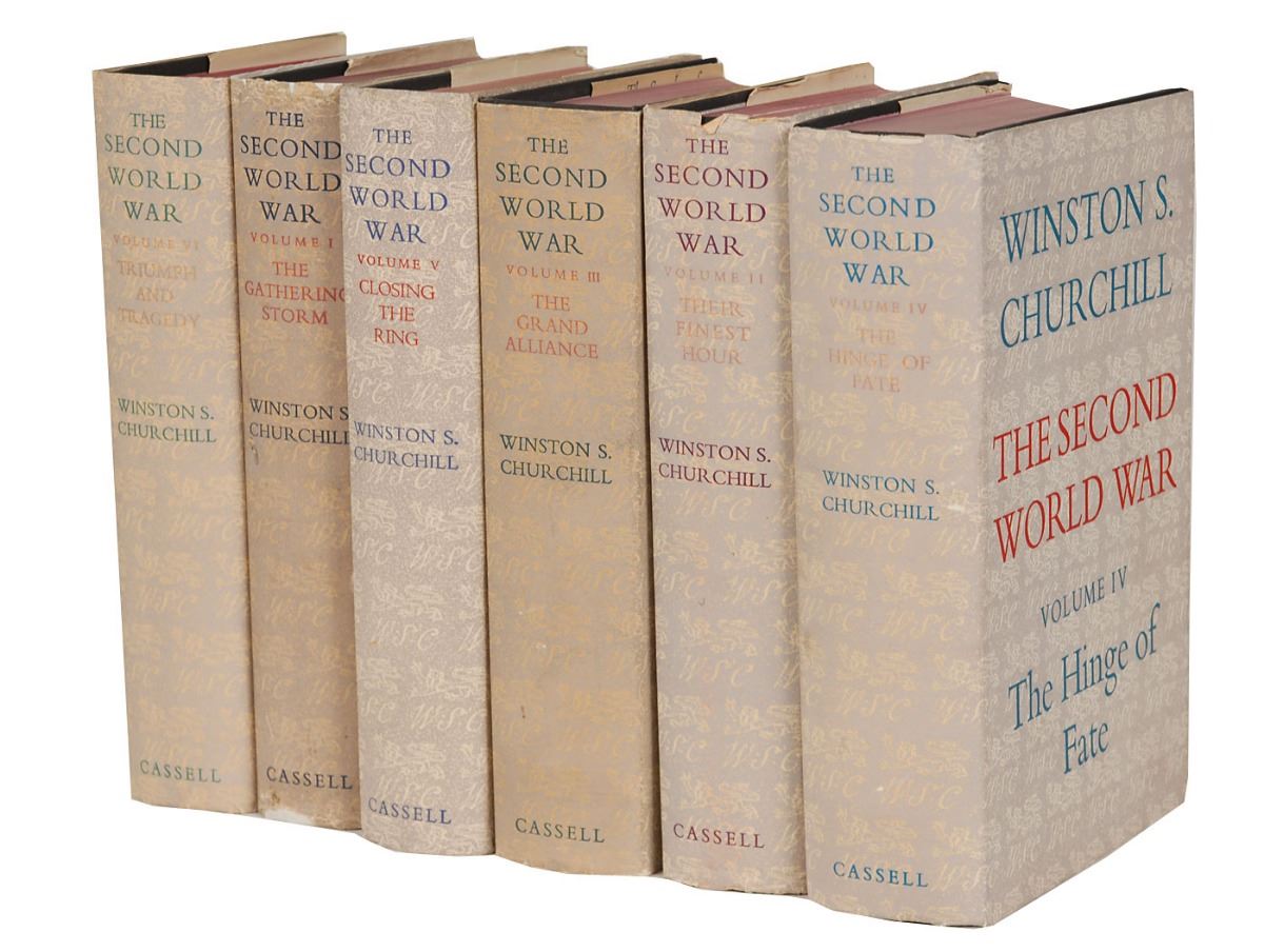 Signed book: The Second World War, Volume V: Closing the Ring. First edition. London: Cassell & Co. Ltd, 1952. Hardcover with dust jacket, 6 x 8.5, 673 pages. Signed on the first free end page in bold fountain pen, "From Winston S. Churchill." Includes first edition copies of the other five volumes in the series. Autographic condition: fine. Book condition: VG/VG. In addition to his political acumen, Churchill was a celebrated writer; though probably best known for this six-volume history of World War II, he published more than forty books and received the 1953 Nobel Prize for Literature 'for his mastery of historical and biographical description as well as for brilliant oratory in defending exalted human values.' Pre-certified PSA/DNA.