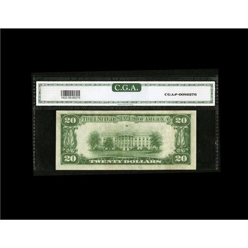 48B. CURRENCY – Notes sold referencing a third-party grading service are sold "as is" without any express or implied warranty, except for a guarantee by Auctioneer that they are genuine. Grading, condition or other attributes of any lot may have a material effect on its value, and the opinion of others, including independent grading services such as PCGS Currency, PMG, and CGA may differ with that of Auctioneer. Auctioneer shall not be bound by any prior or subsequent opinion, determination, or certification by any independent grading service. The grades assigned by any grading service to any note offered in any Heritage Currency Auctions of America sale represent the opinion of that grading service only,and may differ in material respects from the grade assigned to the same note in previous sales by HCAA or other auction companies, or from the grade that would be assigned by any other grading service. HCAA is unable to view any third party graded item outside of the holder, and specifically disclaims any liability of any kind to bidders who bid on third party graded items for mistakes of commission or omission by any grading service. Bidders are hereby notified that currency grading standards have changed in the past and are subject to change in the future, and that the only remedy bidder has with respect to third party graded notes is to deal directly with the grading service certifying the item. Bidders are also advised that Auctioneer makes no representation or guarantee that any item obtained by Bidder will be assigned any particular grade by any particular grading service, and as noted herein, Bidder specifically waives any claim to right of return of any item because of the opinion, determination, or certification, or lack thereof, by any independent grading service. Certain warranties may be available from the grading services and the Bidder is referred to them for further details: Paper Money Guaranty (PMG), PO Box 4711, Sarasota FL 34230; PCGS Currency, PO Box 9458, Newport Beach, CA 92658; Currency Grading & Authentication (CGA), PO Box 418, Three Bridges, NJ 08887.