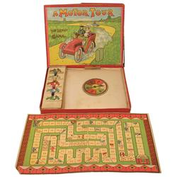 A Motor Tour Board Game, designed in England. J.S & S Bavaria maker. Instructions on inside of lid. Some damage to edges of box otherwise excell...