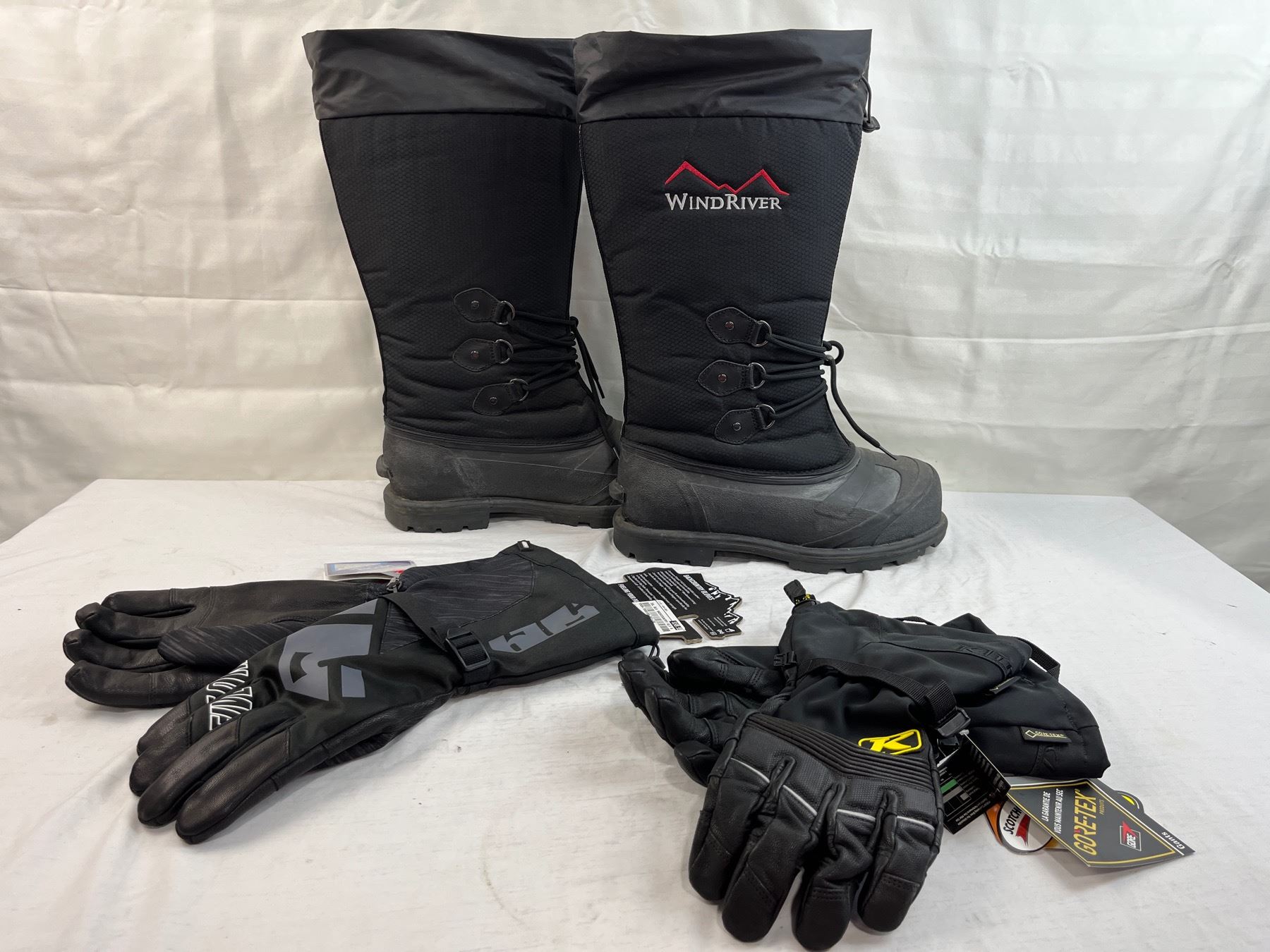 Windriver Boots Size 12 - Goretex Gloves (Klim) - Back Country Gloves size 3XL