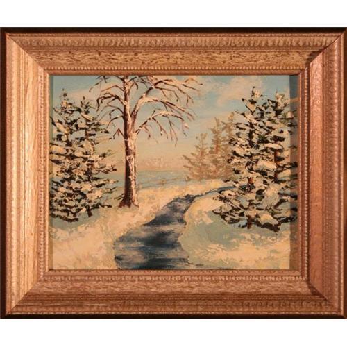 <tr><td>Title:"Winter Creek Scene" by C.H. - Oil Painting</td></tr>