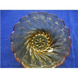 Gorgeous swirl pattern, scallop rimmed bowl in a golden amber color. Bowl has a very elegant swirl pattern design. Perfect as a salad dish measuring