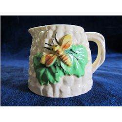 This cute little beige colored pitcher is molded like a honey comb, with a bee in leaves on the front side. Made in Japan with no noticeable nicks or