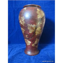 This clay vase measures 11" tall x 4" across mouth x 3.75" across the base.