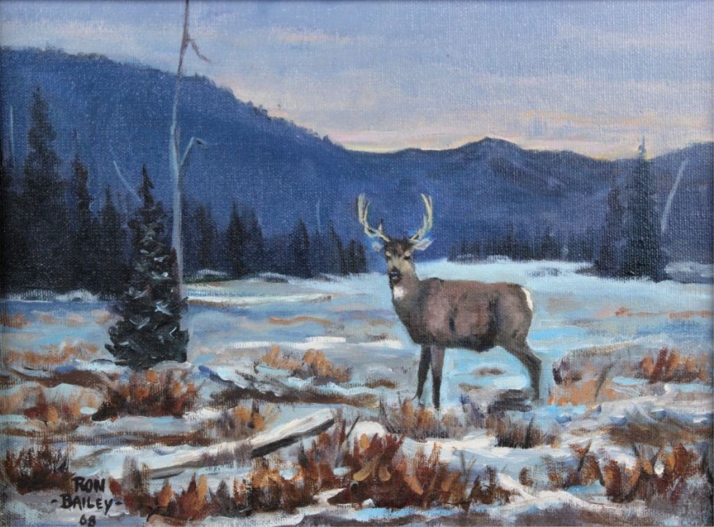 This is an original work of art oil painting on canvas. Ron Bailey (American, d-1983), whose strongest affiliation was Montana, was best known for his paintings of Native Americans, landscapes and wildlife. The original artwork is 9" x 12" and the frame is 14.25"x17.25"