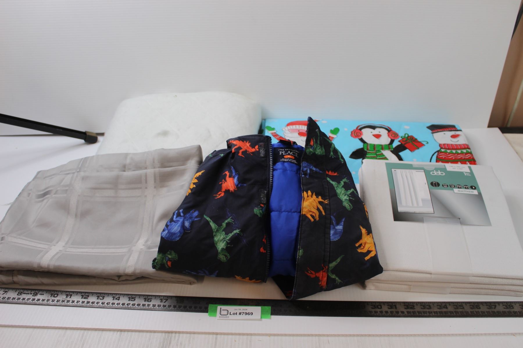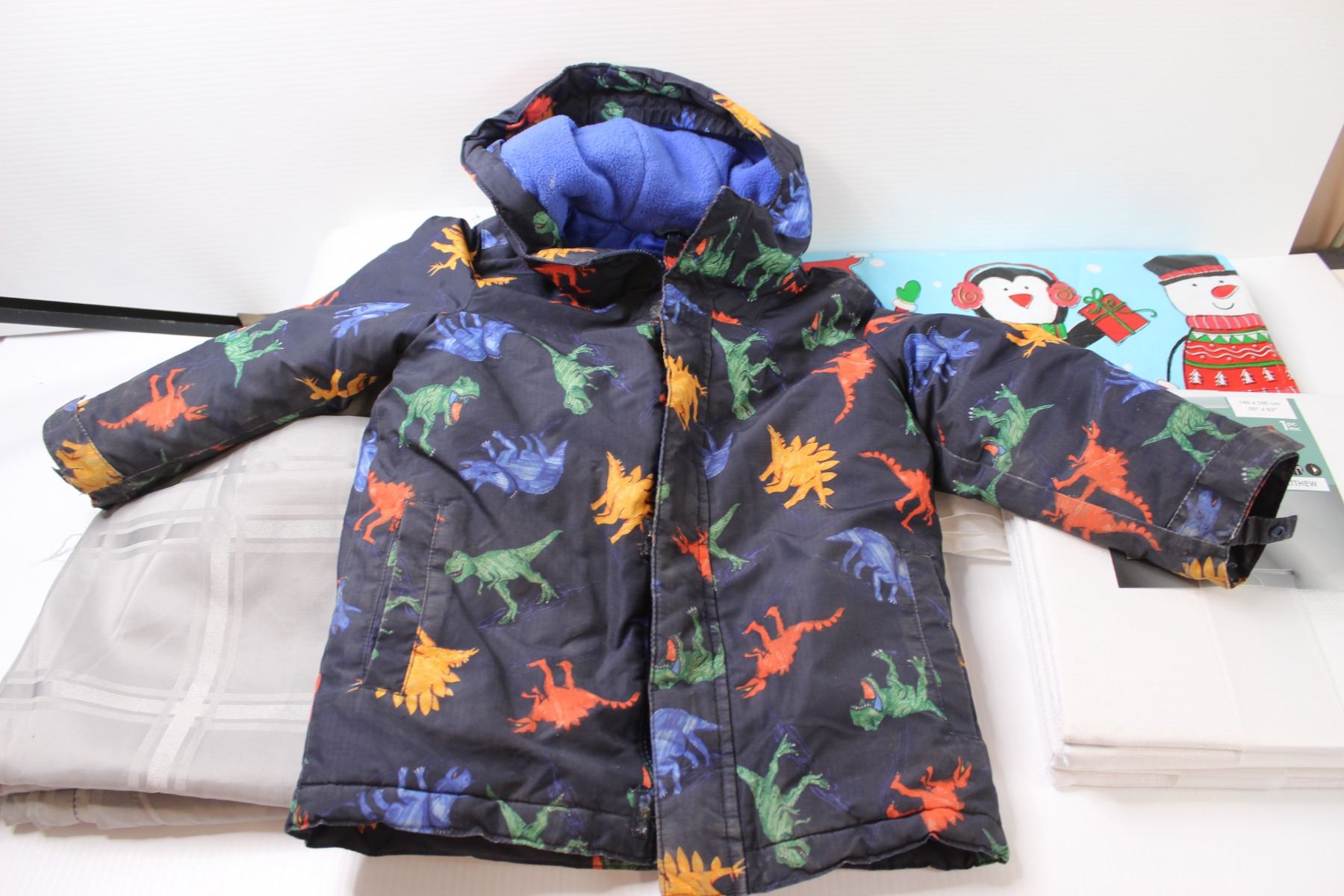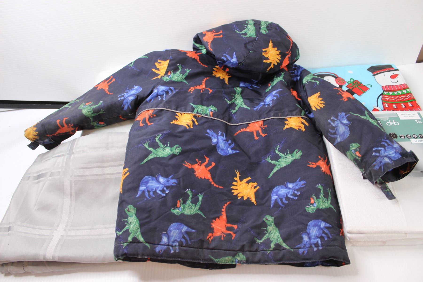 Winter Dinosaur Childrens Jacket - Size 5T, (3) Tablecloths, (2) Curtains - Has Scent