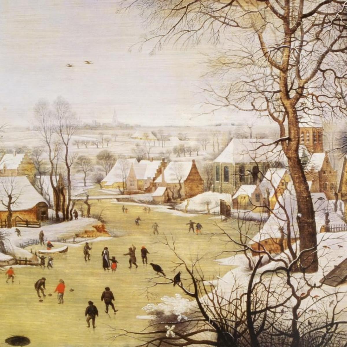 "Winter Landscape with Skaters and Bird-Trap" fine art print on paper by Pieter Brueghel the Younger (1564-1636), created with EncreLuxe printing process which captures the subtle nuance of color from the artist's palette! Measures approx. 35.5" x 26" (with border); 29.5" x 20" (image).