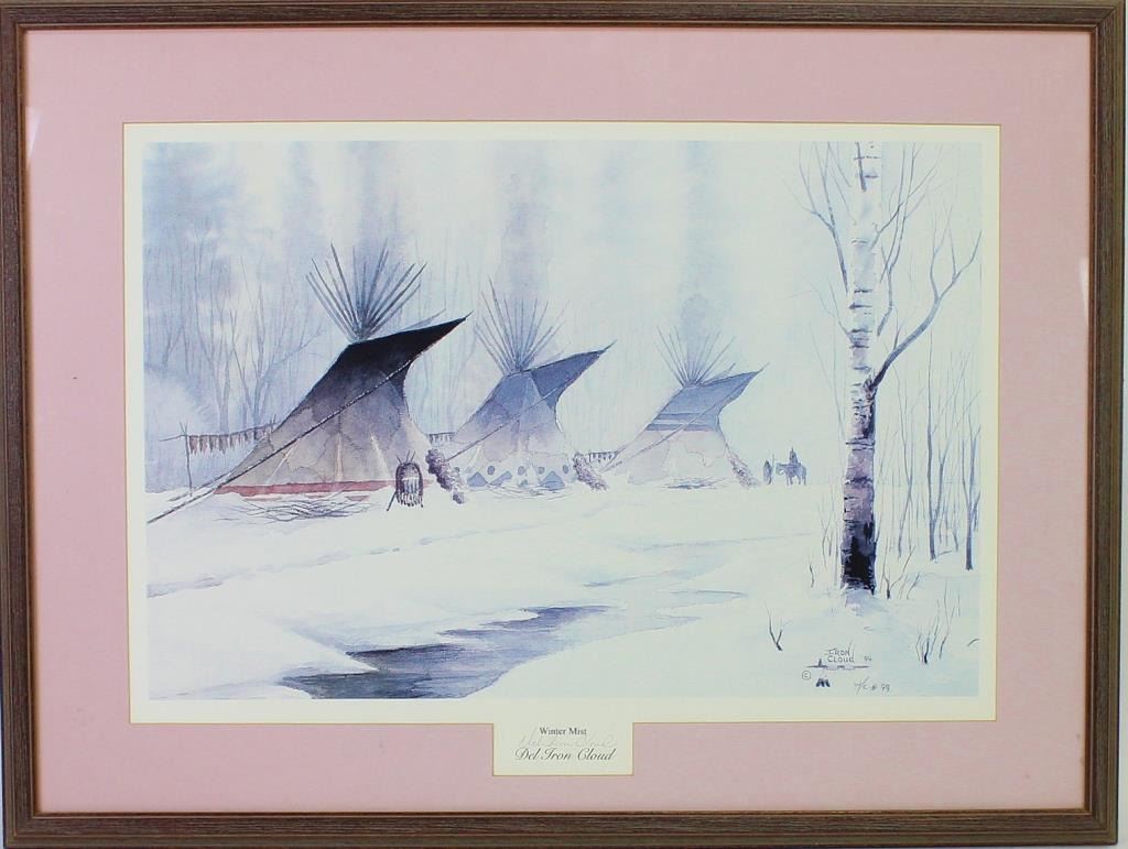 "Winter Mist" limited edition print by Del Iron Cloud 1994 and signed by the artist, image 15" X 22". Iron Cloud 1994 and signed by the artist, image 15" X 22".