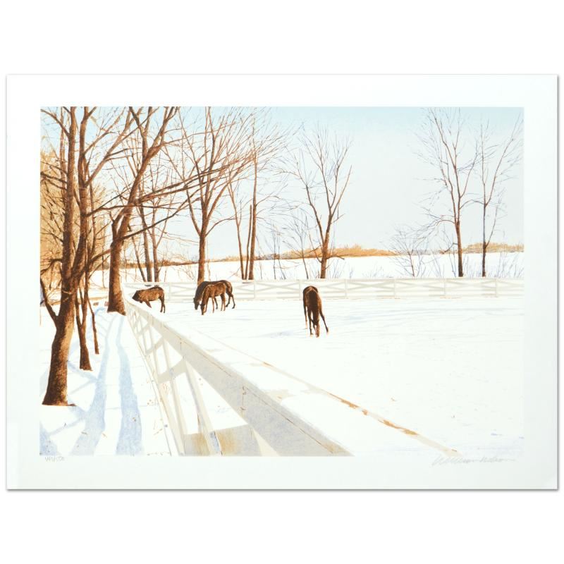 "Winter Pasture" is a limited edition serigraph on paper by William Nelson, numbered and hand signed by the artist! Measures approx. 28.5" x 21.5" (with border); 25" x 18" (image).