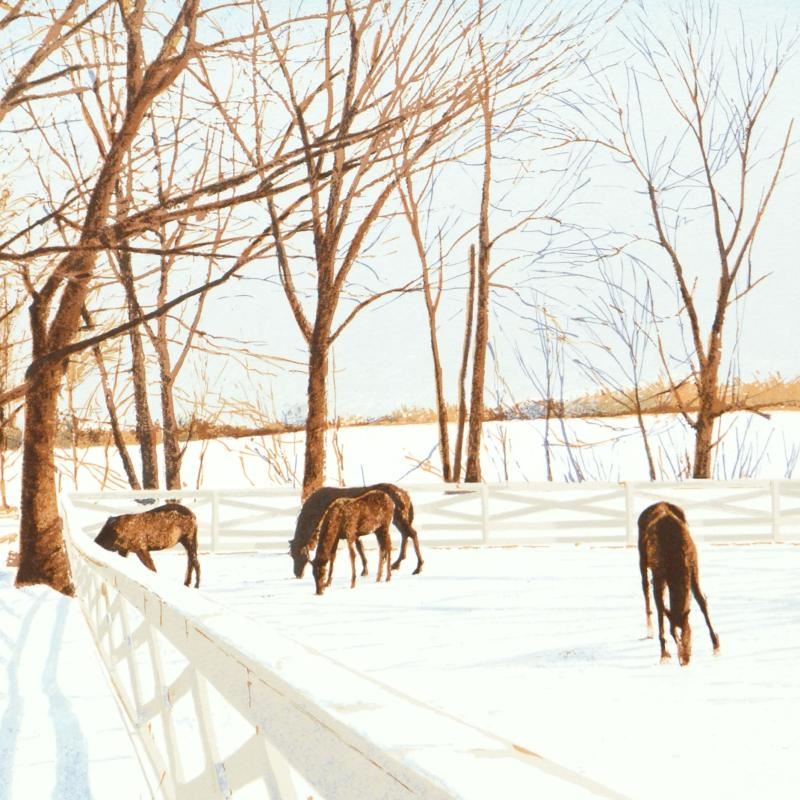 "Winter Pasture" is a limited edition serigraph on paper by William Nelson, numbered and hand signed by the artist! Measures approx. 28.5" x 21.5" (with border); 25" x 18" (image).