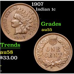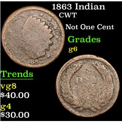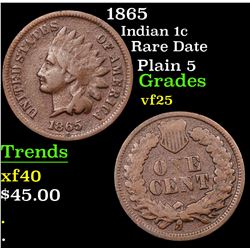1865 Rare Date Plain 5 Indian Cent 1c Grades vf+.