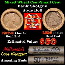 Mixed small cents 1c orig shotgun roll, 1917-d Wheat Cent, 1893 Indian Cent other end. The roll is held in an old Collectable Mcdonalds Brant w