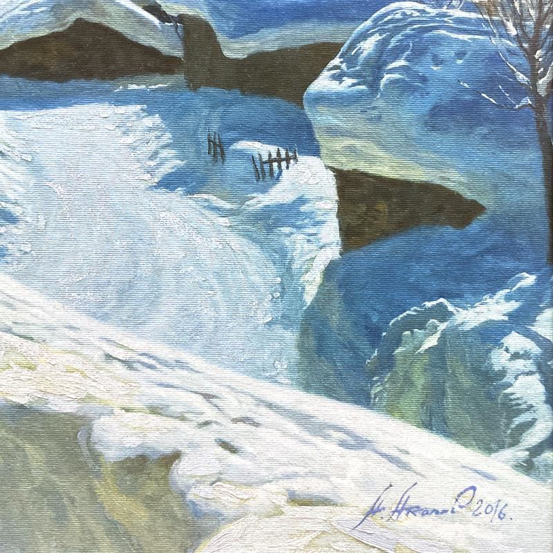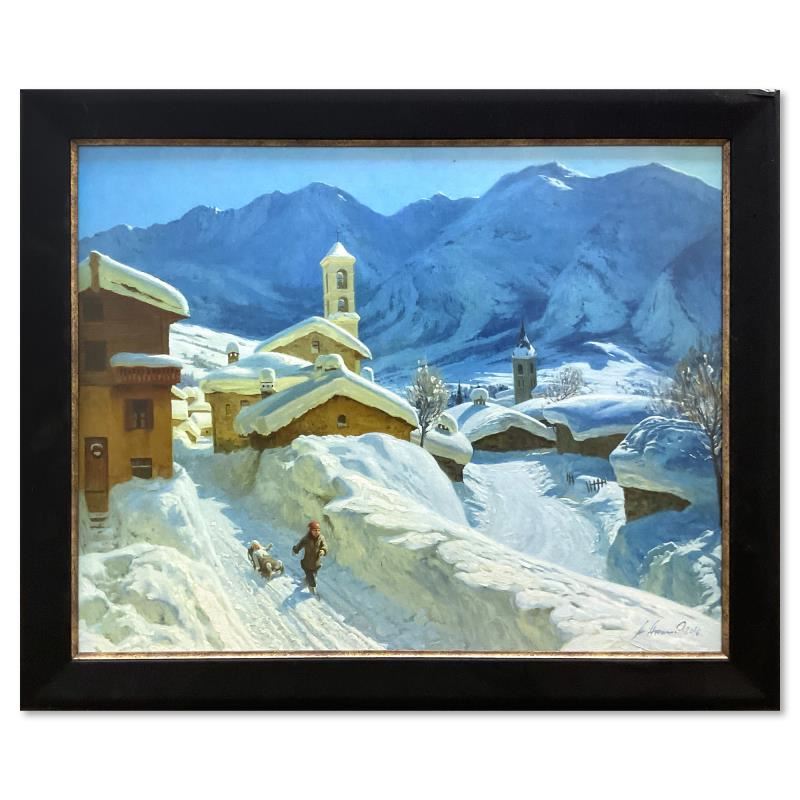 "Winter in the Alps" is a limited edition giclee on canvas by Alexander Akopov, numbered 12/95 inverso and hand signed. This piece comes matted. Includes Letter of Authenticity. Measures approx. 25.5" x 31.5" (matting), 21" x 27" (image).