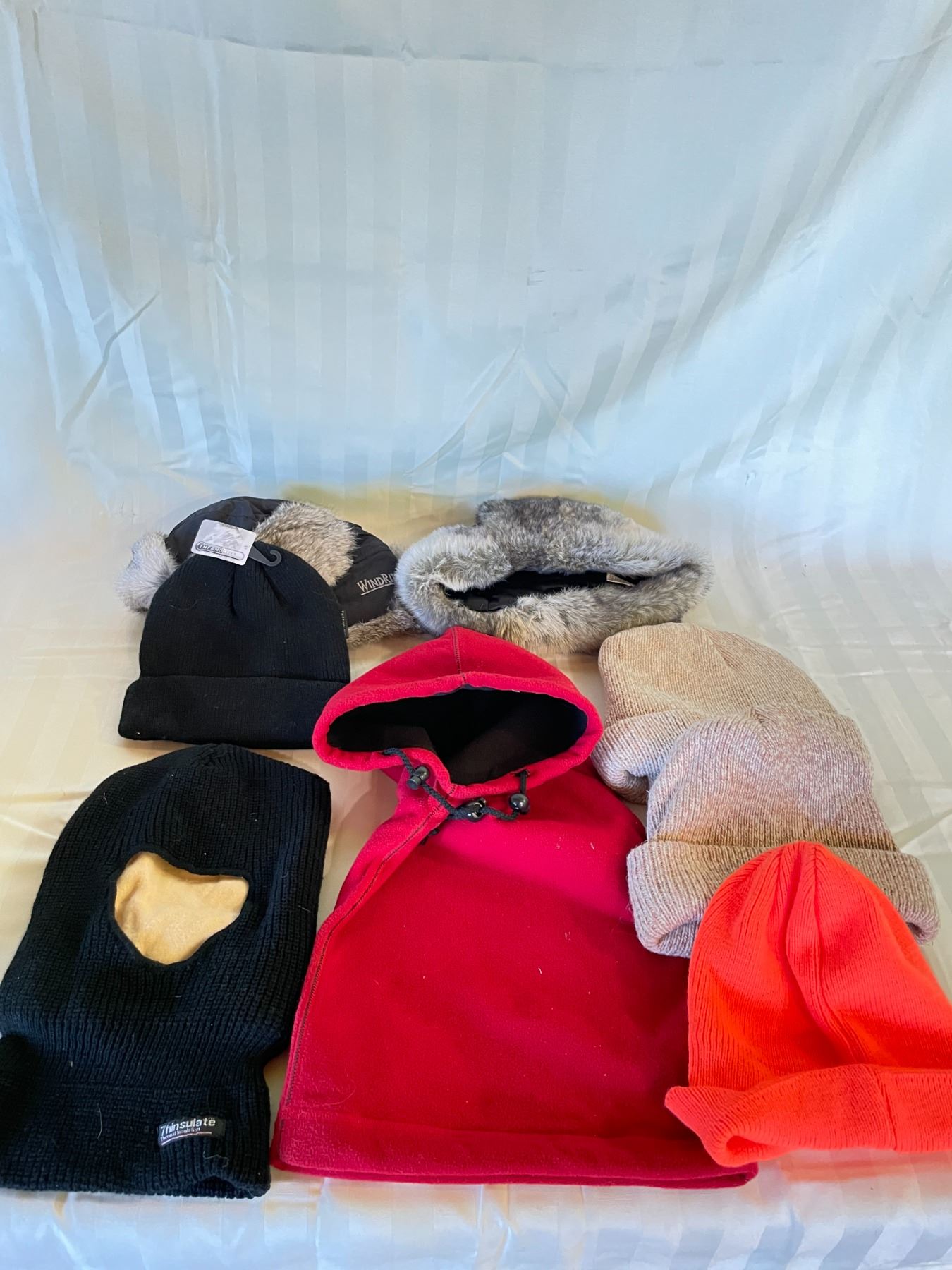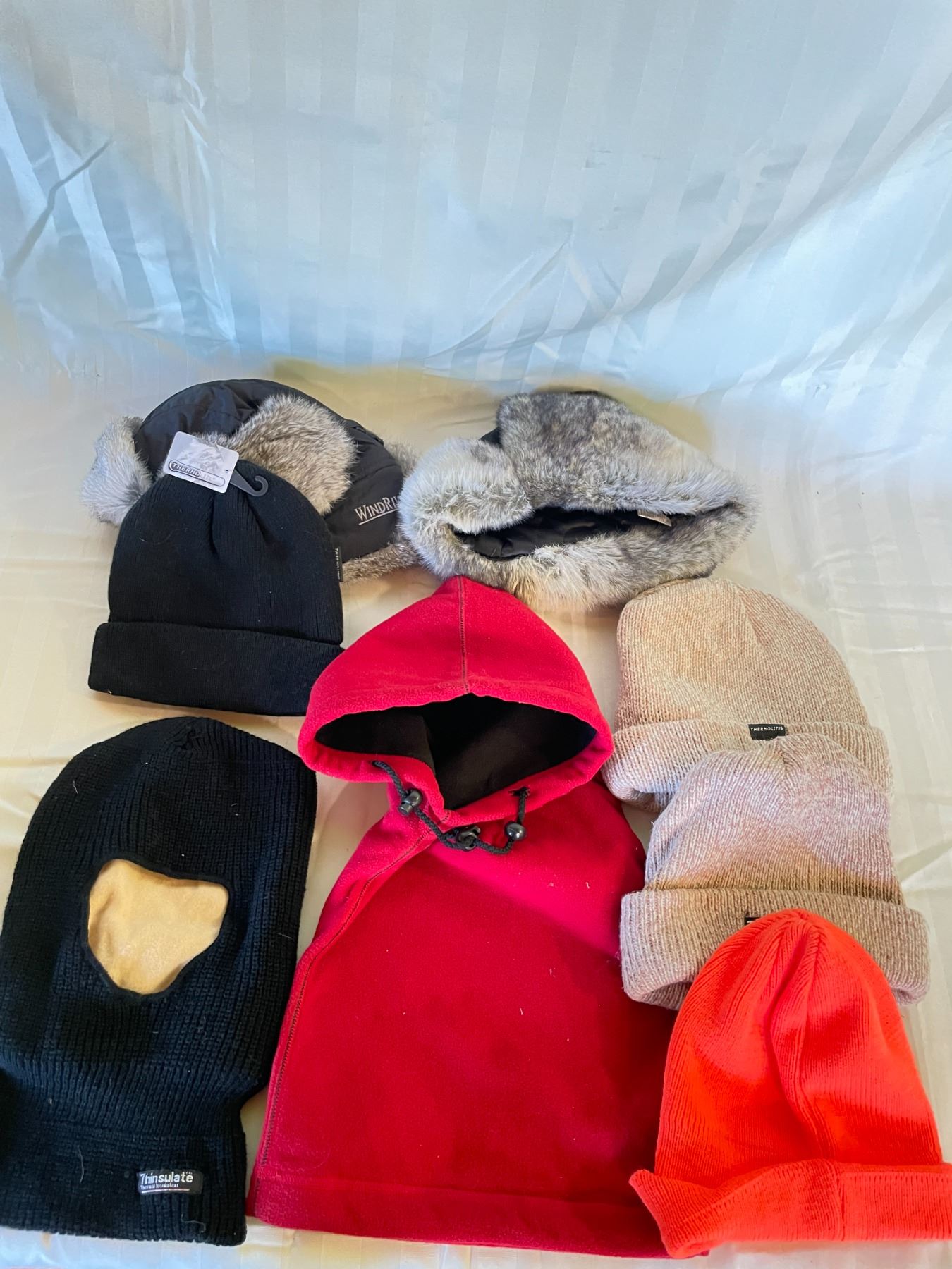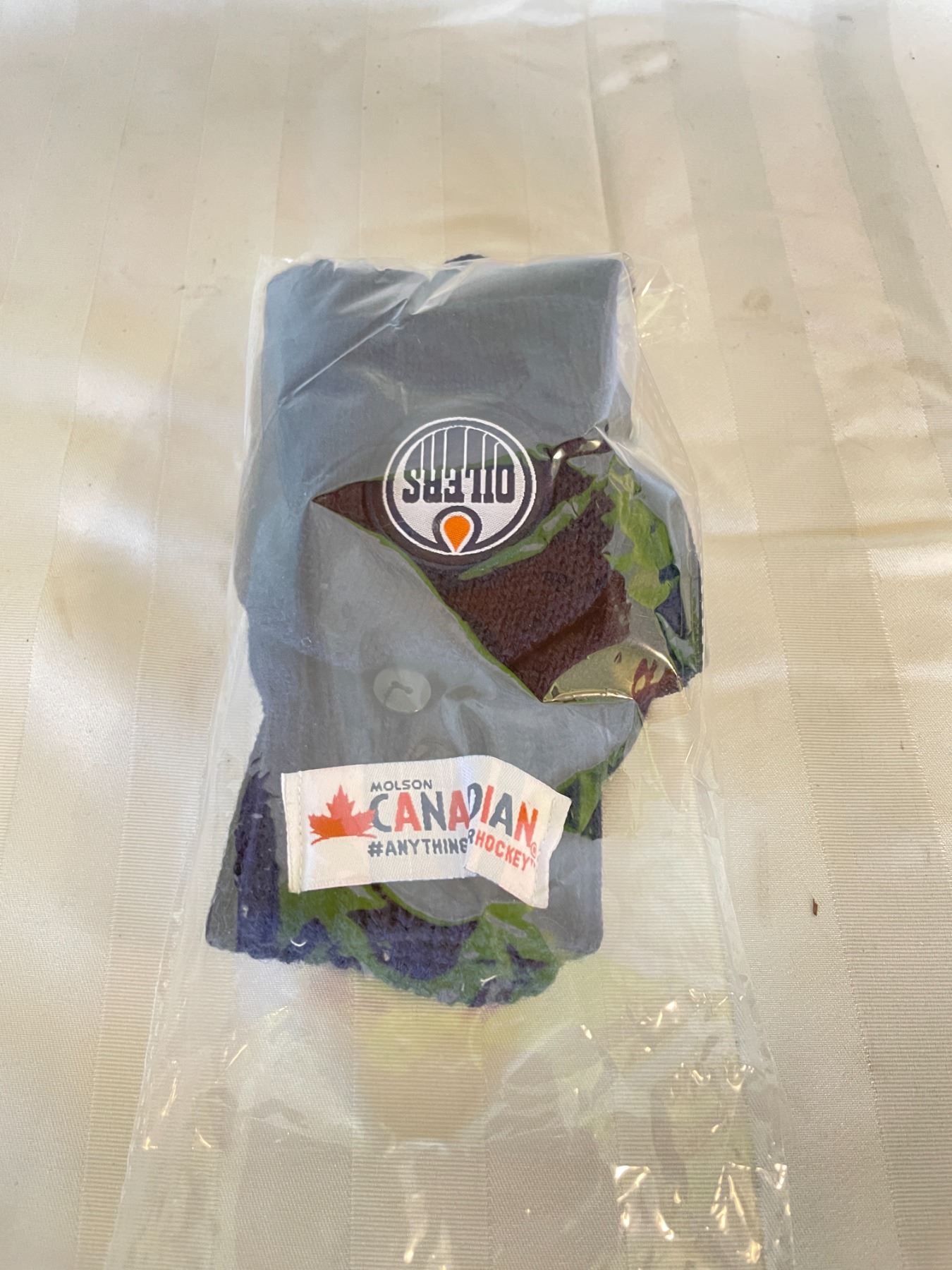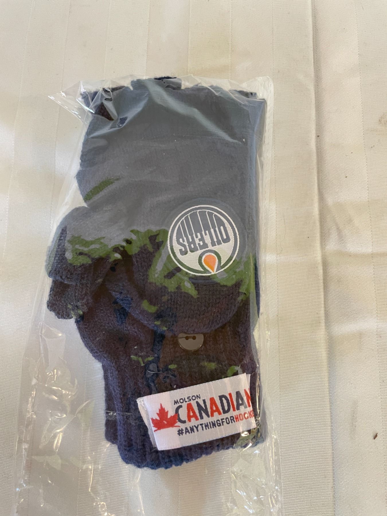 Includes 4 toques - 2 hats - 2 belaclavas and 1 pair Oilers gloves