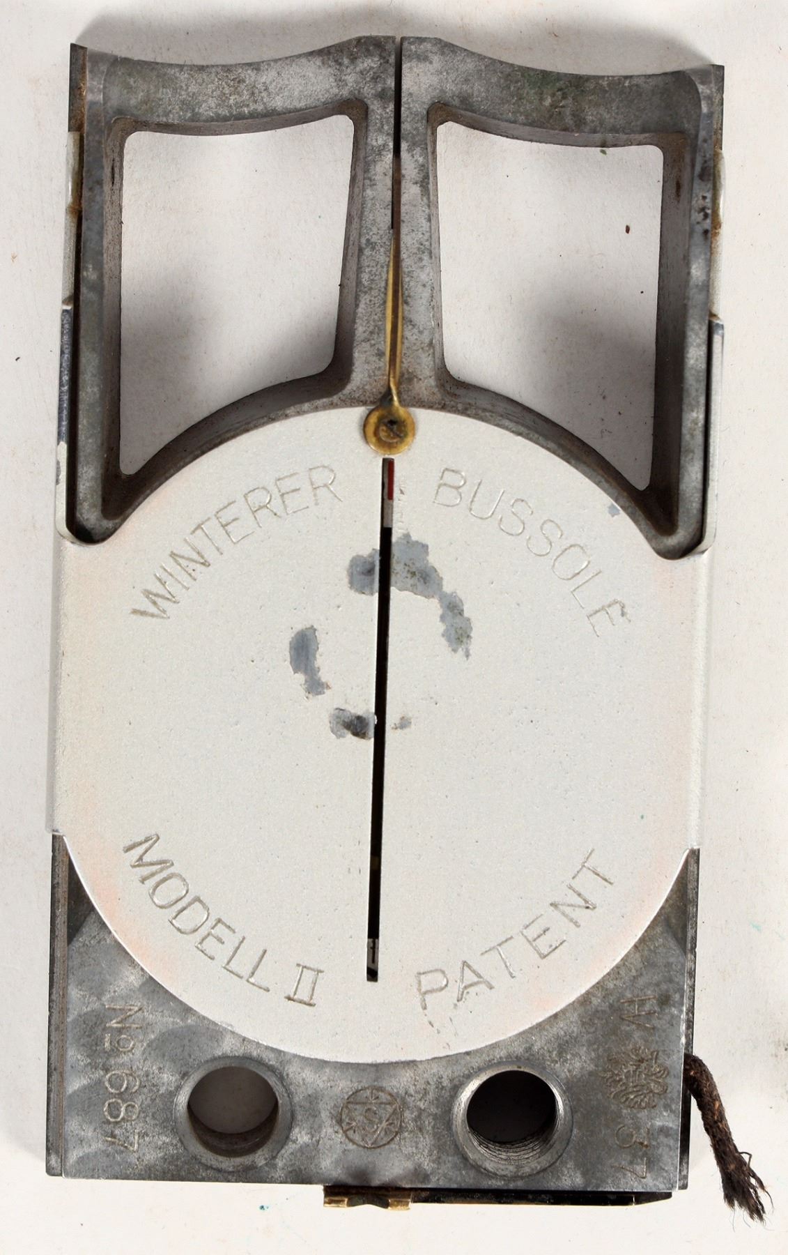 This is a German Made Winterer Bussole compass. Vintage 1938 Model 11. Complete with a case. S/N 687. The case is in fair condition with threaded ferrule for pedestal mounting. From the Popovich collection. Please see photo for details.