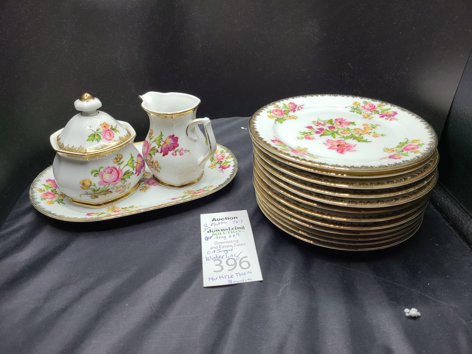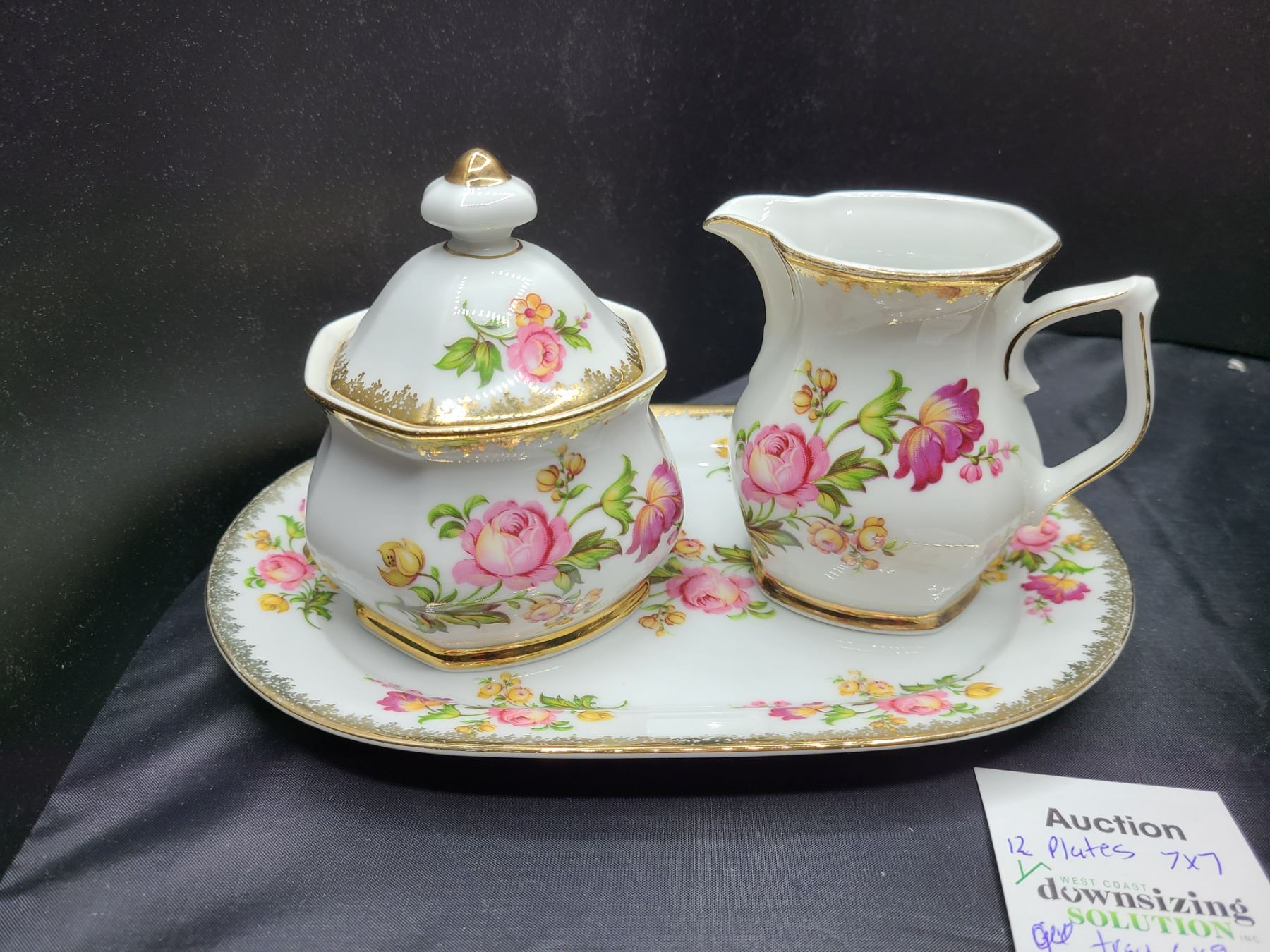 Cream & Sugar on 6x9 tray and 12 plates 7x7 Bring packing materials and pickup at 10 am