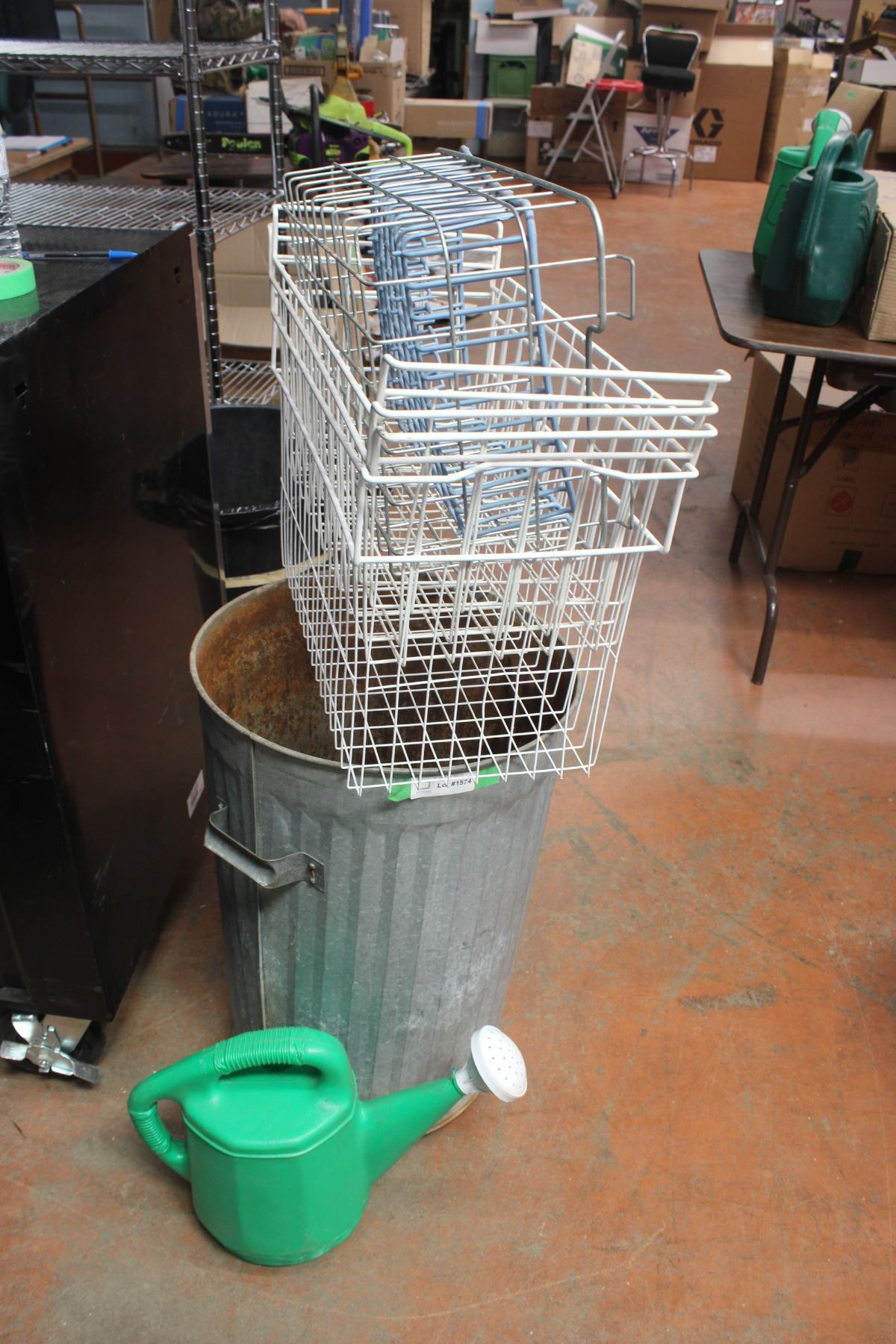 Wire Metal Storage Container With Watering Can and Garbage Can