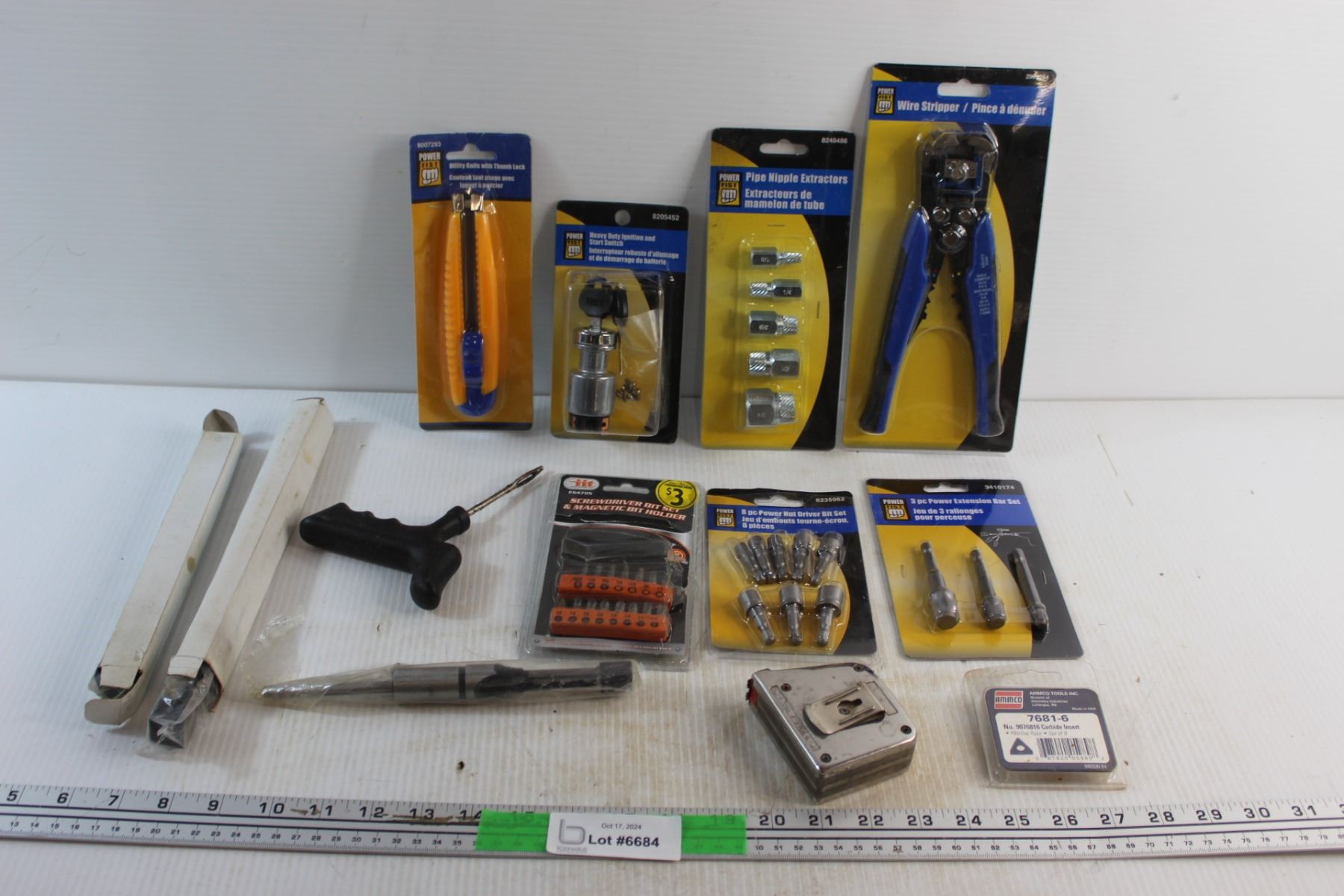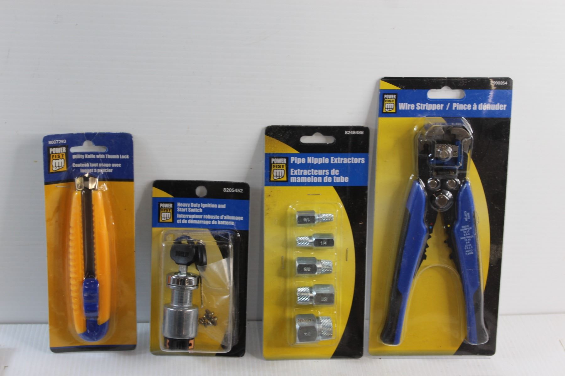 Wire Stripper, Pipe Nipple Extractors, Heavy Duty Ignition and Start Switch, Tape Measure and Assort