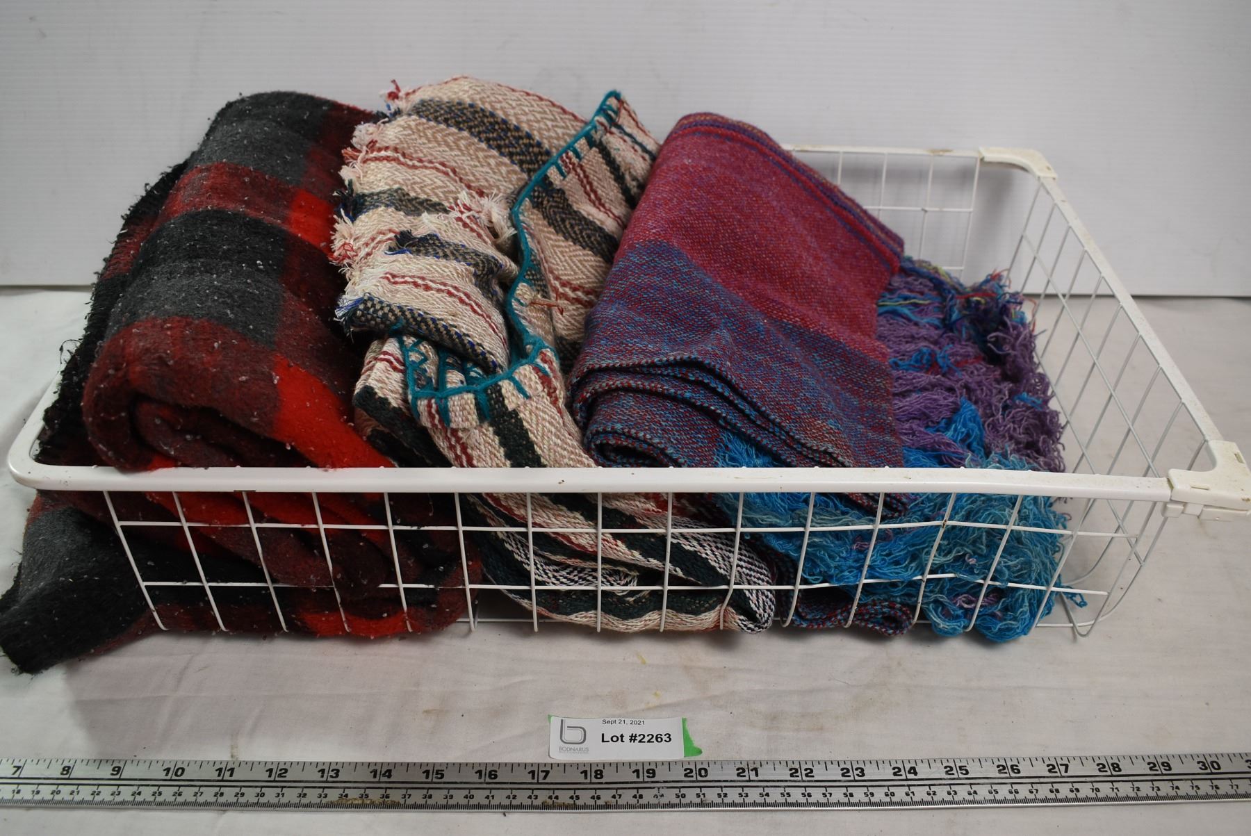 Wire basket with 3 blankets