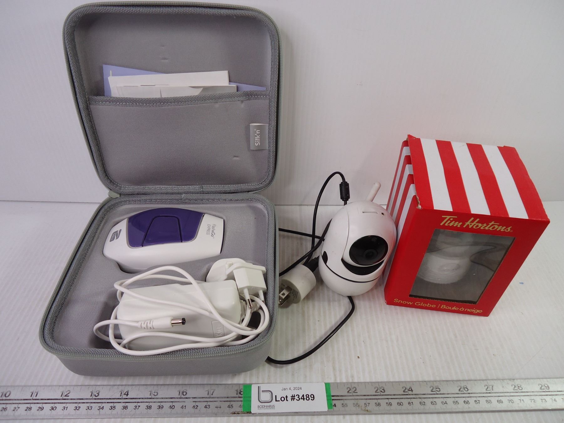 Wireless Camera, Silk N'Skin Laser Hair Remover (untested) and Tim's Sno-Globe