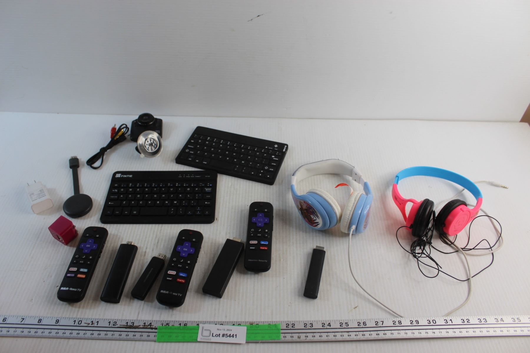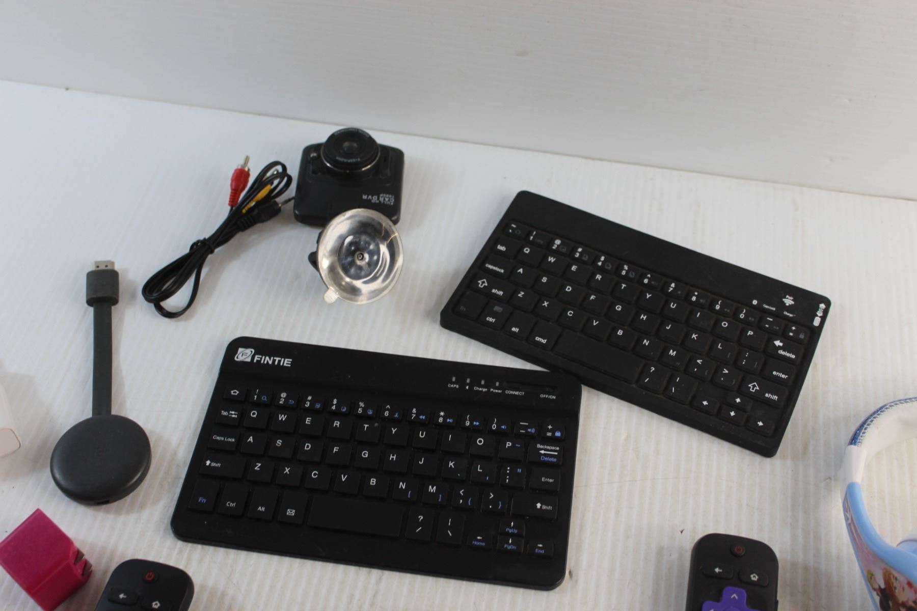 Wireless Keyboards, Roku Remotes, Charging Blocks, Headphones and a Dash Cam - As Is