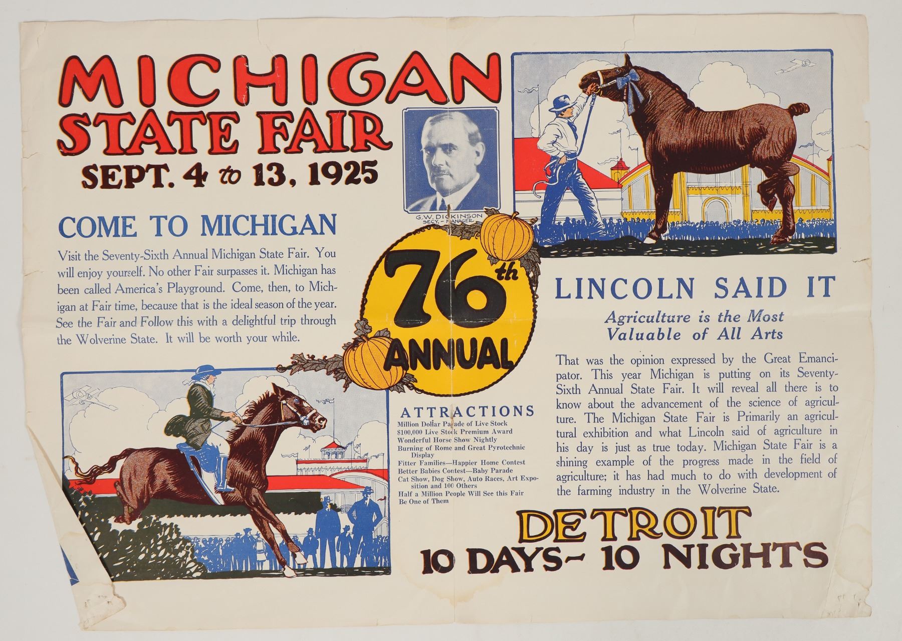 Wisconsin-Illinois-Michigan State Fair Ad, 1925. Four page full color ad. with dates and activities. In good condition