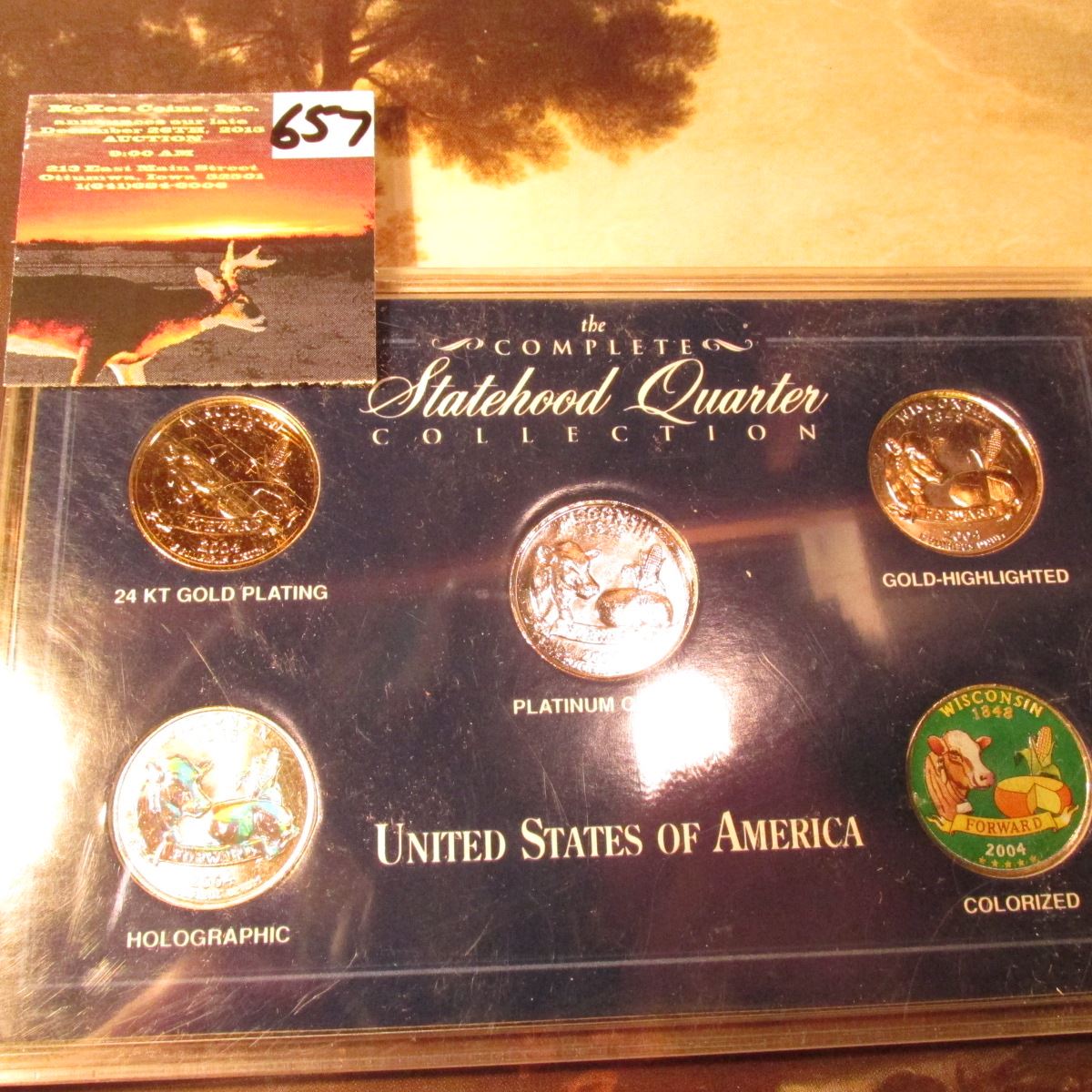 Wisconsin Statehood Quarter Collection 24K Gold plating; Holographic; Platinum Overlay; Gold-Highlighted; & Colorized. (5 pcs.).
