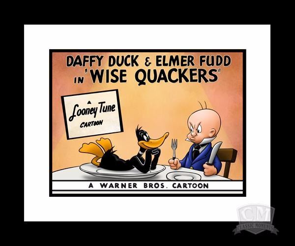 This framed limited edition 16x20 giclee lobby card entitled “Wise Quackers" is a 1949 Friz Freleng cartoon. In "Wise Quackers" Daffy, the "little black duck", falls from the sky onto Elmer Fudd's farm, and rather than be shot, he begs Elmer to accept him