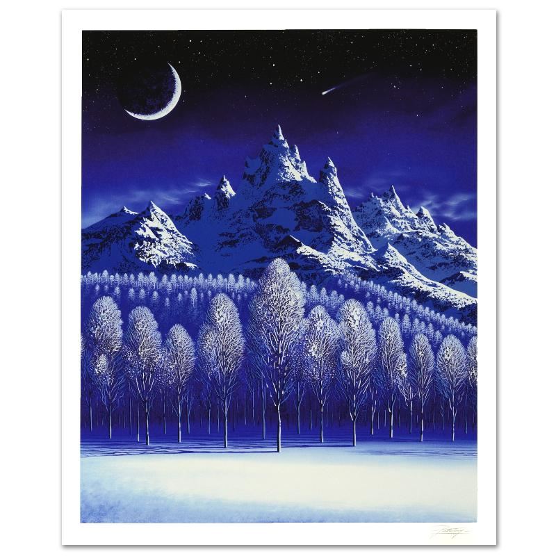 With an impeccable talent for capturing light and shadow, Jon Rattenbury creates luminous landscapes that are replete with bright colors and intricate details. "Wish Upon A Winter Star" is a limited edition serigraph on heavy artist's paper, AP numbered and hand signed by the artist. Includes Certificate of Authenticity! Measures approx. 27" x 32.5" (with border), 22" x 27.5" (image).