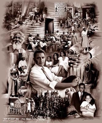 Artist: Wishum GregoryTitle: Out of Many One: From Slavery to the PresidencyImage Size: 24 x 20 inches.Paper Size: 24 x 20 inches.