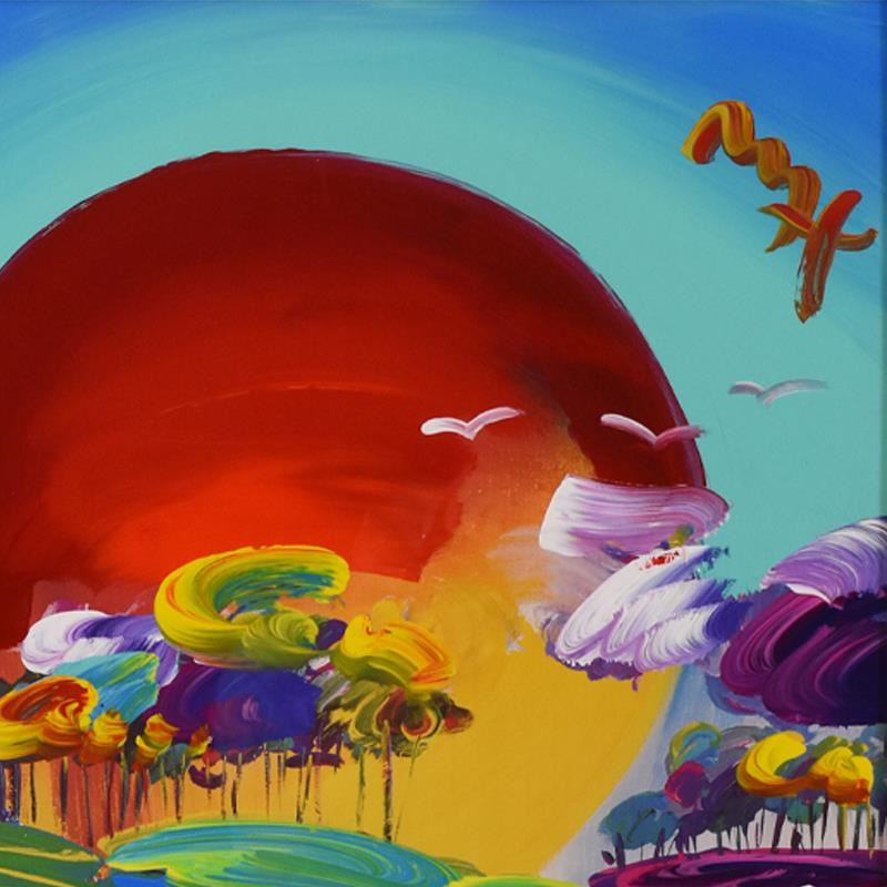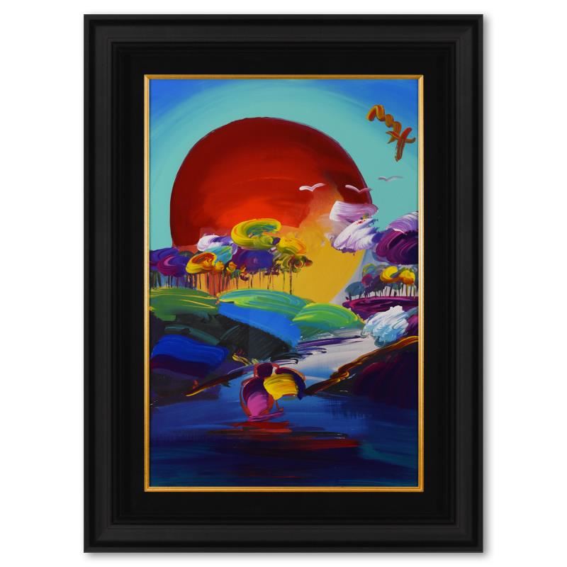 "Without Borders II" is a one-of-a-kind acrylic mixed media on paper, hand signed by Peter Max. This piece comes custom framed. On the reverse side of this piece there is a registration number (233728) from Peter Max Studios certifying authenticity. Measures approx. 34.5" x 46.5" (with frame), 23" x 35" (image).