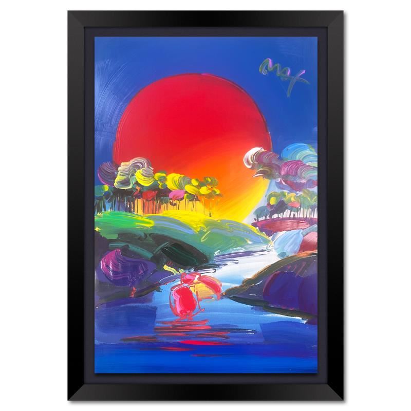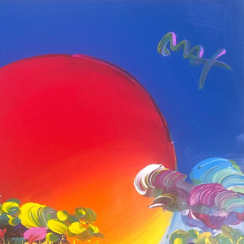 "Without Borders" is a one-of-a-kind acrylic mixed media on paper, hand signed by Peter Max. The piece comes custom framed with a backside cutout to display Peter Max Studio registration number 247448 certifying authenticity. Measures approx. 42" x 30" (frame), 36" x 24" (image). This item requires special handling and may have a longer than usual turnaround.