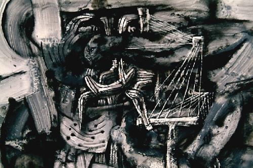 McClure, Tom (American 1920- ), signed in lower right, ink on gesso, 23 ¼” by 23 ¼”.