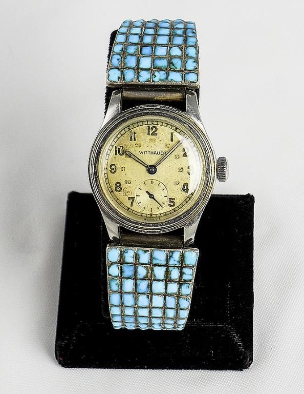Wittnauer Swiss Made Unisex Turquoise Band Analog Watch With Stainless Steel Stretch Band. Black Numbers And Dials. Sold As Is.