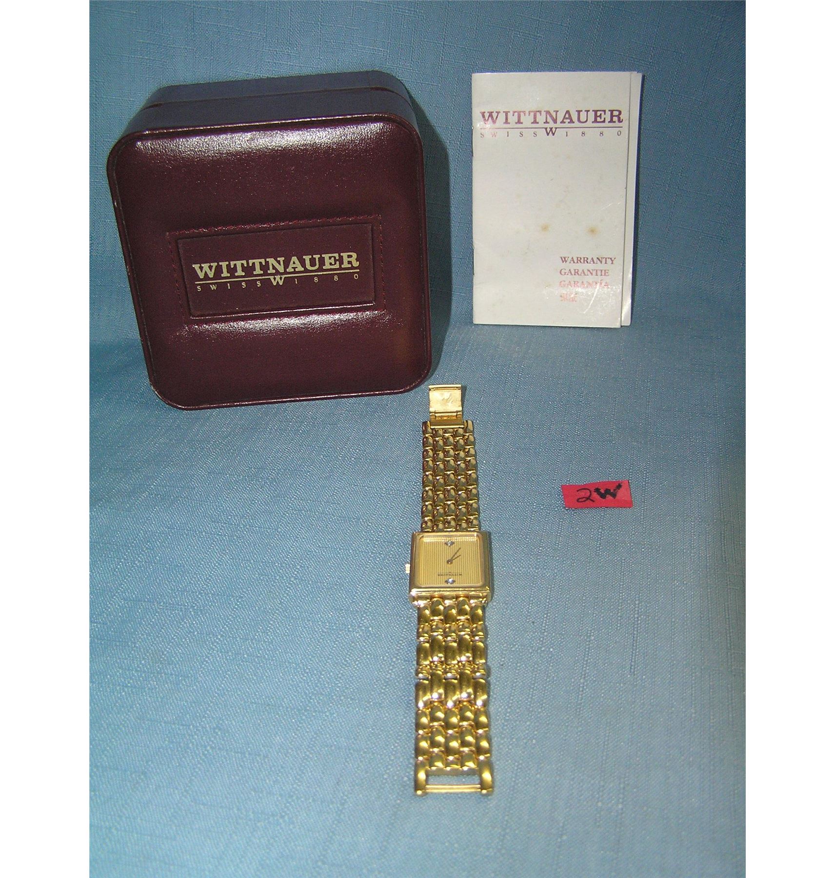 Wittnauer Swiss made gold toned gentleman's wrist watch with original booklet and box est. value $300.00-$400.00