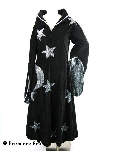 From New York Costume Designer Frankie Steinz: "Wizard Woman"; long black dress with long draping sleeves, covered in silver sequin stars and moon; Silver sequins lining; Tall black Wizard pointy hat with large silver sequin