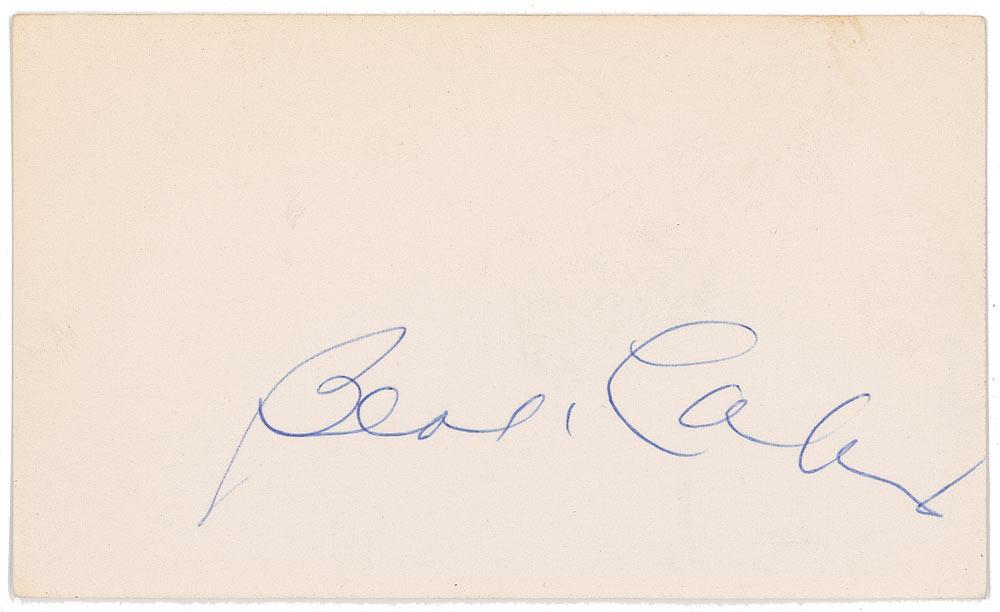 Ballpoint signature, “Bert Lahr,” on a 5 x 3 card. In fine condition with a small spot of soiling at the top edge.
