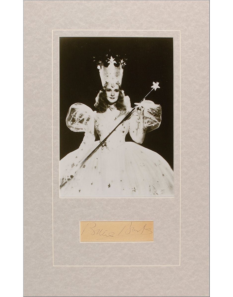 Vintage fountain pen signature, “Billie Burke,” on an off-white album page. Matted with a photo of Burke as Glenda to an overall size if 11 x 17. In fine condition